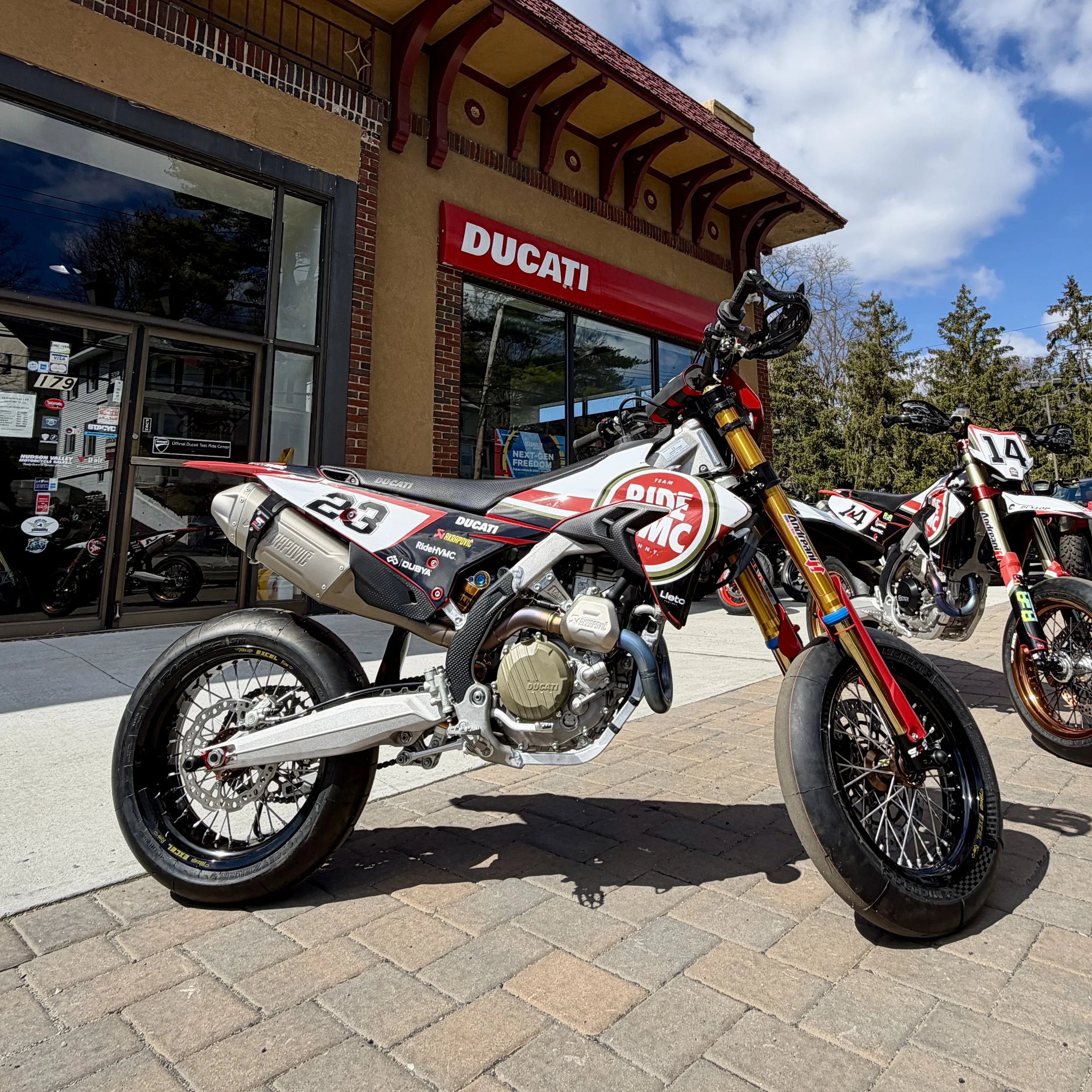 We’ve got a bike for you to try! Hudson Valley Motorcycles will have a new Desmo 450 SM available for a single session test ride.